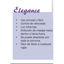 Si vous souffrez de douleurs dans le dos ou à un autre endroit comme le cou, les fesses, les jambes et que vous n'avez personne pour vous faire un bon massage, le coussin ELEGANCE peut vous soulager efficacement de la fatigue et des douleurs dans le cou, les épaules et retour. Il est confortable...